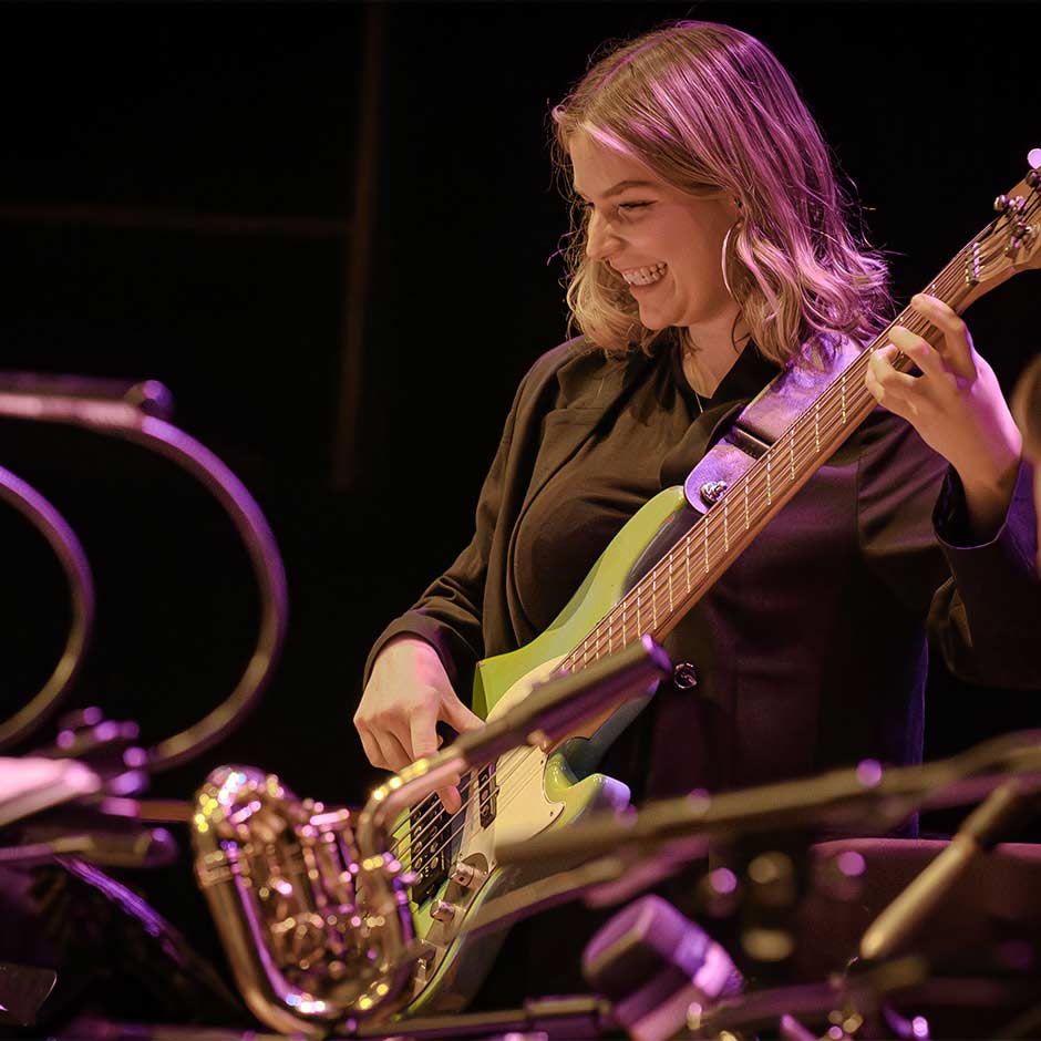 Nach den Sängerinnen Alma Naidu und Kateryna Kravchenko sowie dem Trompeter Daniel Migliosi darf sich jetzt die Bassistin Lena Lorberg für zwei Jahre über das mit insgesamt 20.000 Euro dotierte Stipendium freuen. Lorberg ist in Osnabrück aufgewachsen und wurde als 13-Jährige Mitglied im Landesjugendjazzorchester Niedersachsen. Seit dem Wintersemester 2024/25 studiert die 19-Jährige Kontra- und E-Bass bei Robert Landfermann an der Abteilung Jazz/Pop der Hochschule für Musik und Tanz Köln und ist Mitglied der aktuellen Besetzung vom Bundesjazzorchester. „Die Förderung der Grizzly Jazz Foundation ist eine großartige Chance für mich“, so Lorberg, „mich musikalisch weiterzuentwickeln und eigene Projekte zu verwirklichen. Ich freue mich sehr auf den Austausch und die gemeinsame Zeit.“